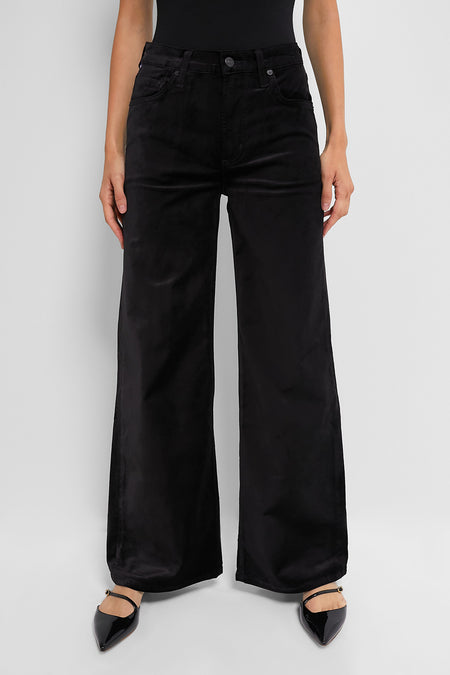 The Black Velvet Loli Mid Rise pant is designed to sit higher on the hip, with a tailored wide leg, for a look that can easily be dressed up or down. We chose to pair it with a sparkly sweater and black flats, but pair with a pump and black clutch for a date night look.