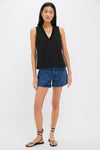 You've heard of the little black dress, now meet the little black tank, the Veronica Top. Unfussy and feminine, this blouse features subtle ruffle detailing along the V-neckline for a bit of flirty flair while keeping it sophisticated. We are wearing this sleeveless stunner four seasons a year with denim, trousers, mini skirts (must we go on?) from work to play with ease and style.