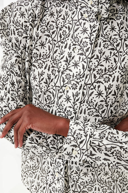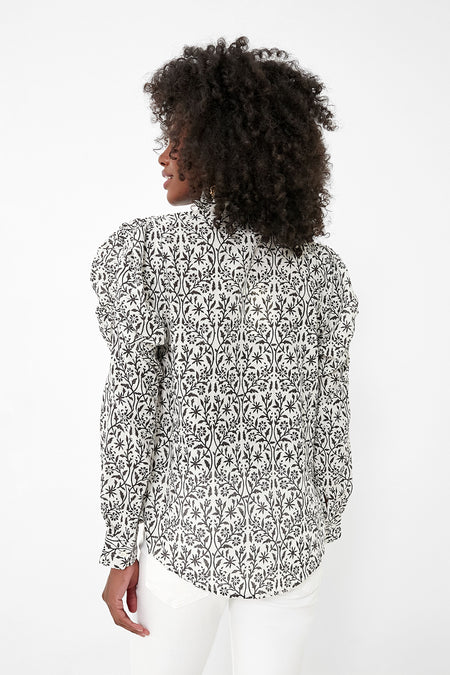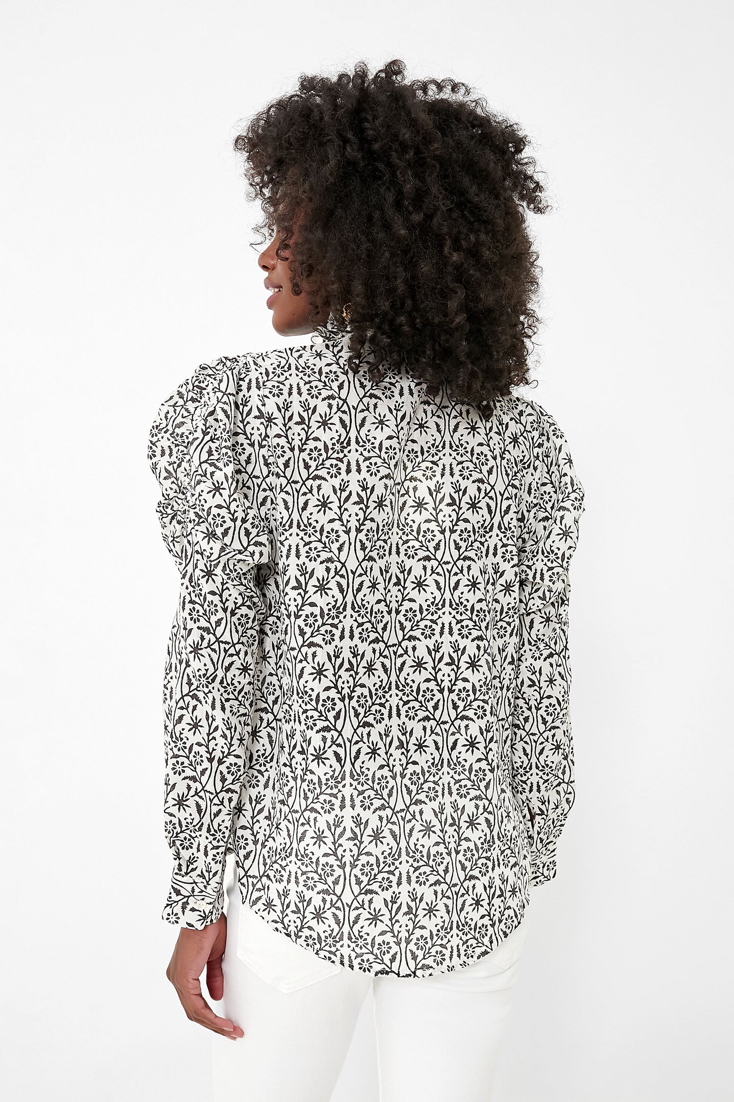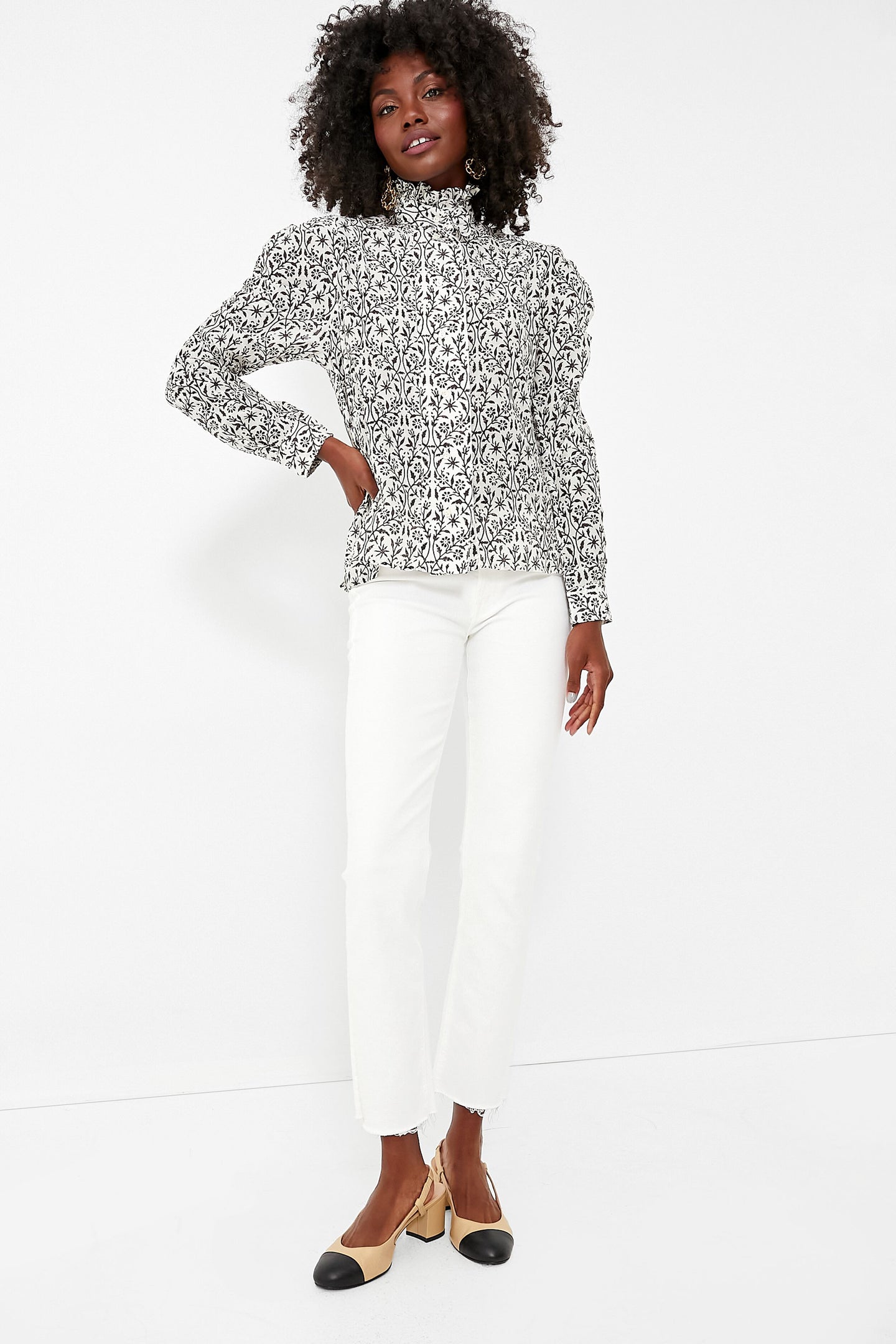 The 18th century-inspired Black Wind Blouse has a beautifully structured silhouette we can’t stop thinking about! Featuring a ruffled collar, long gigot sleeves, and a front button placket, this neutral top is a fun twist on the traditional button-down. Made from a crisp cotton poplin, we love the sophisticated drama that the volume in the sleeves adds. Style this piece with high waisted trousers, pumps, and statement earrings for a desk to drinks look, or dress it up with a mini skirt and glitzy clutch for date night.