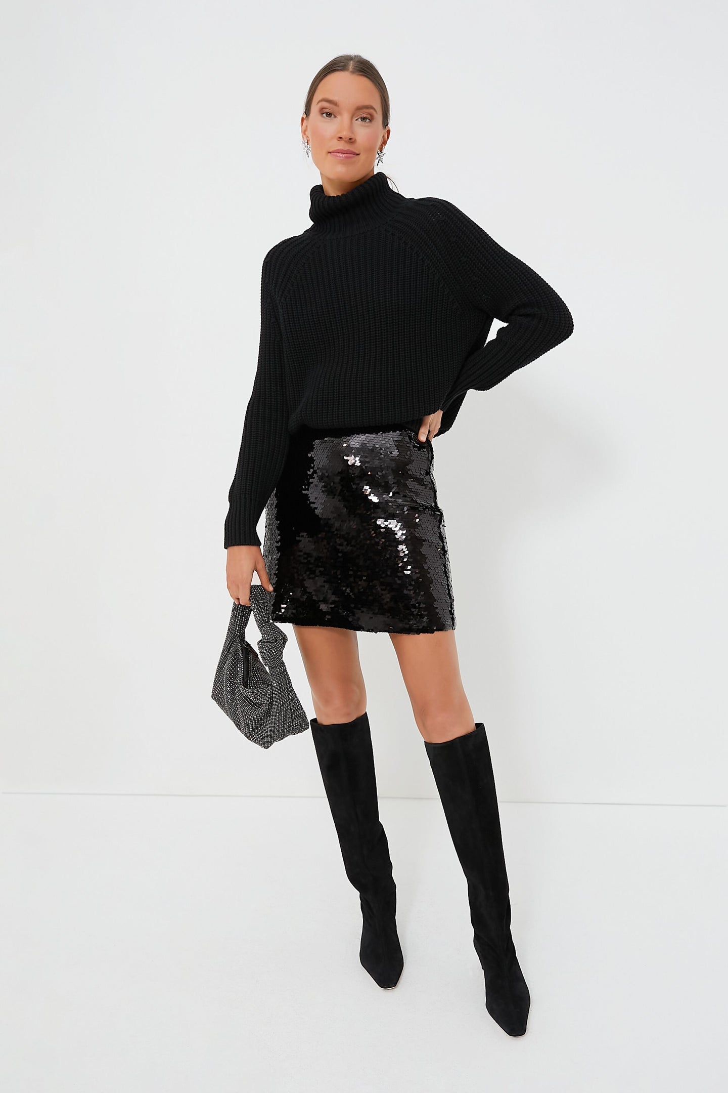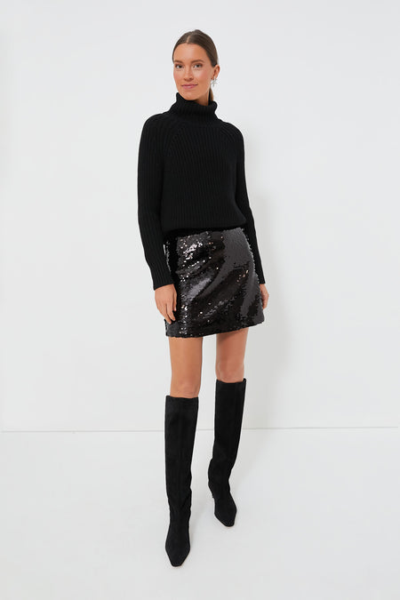 Sleek, chic, and ready for a good time, you're sure to fall head over heels for the Black Zolla Skirt. Made with subtle shimmer in a neutral colorway you can wear over and over again, this darling little mini features tonal piping at the waist, as well as all-over sequins that scream party-ready! Style it with heels and a silky blouse for your next RSVP, or go for a turtleneck and knee boots to wear it to dinner with your girls.