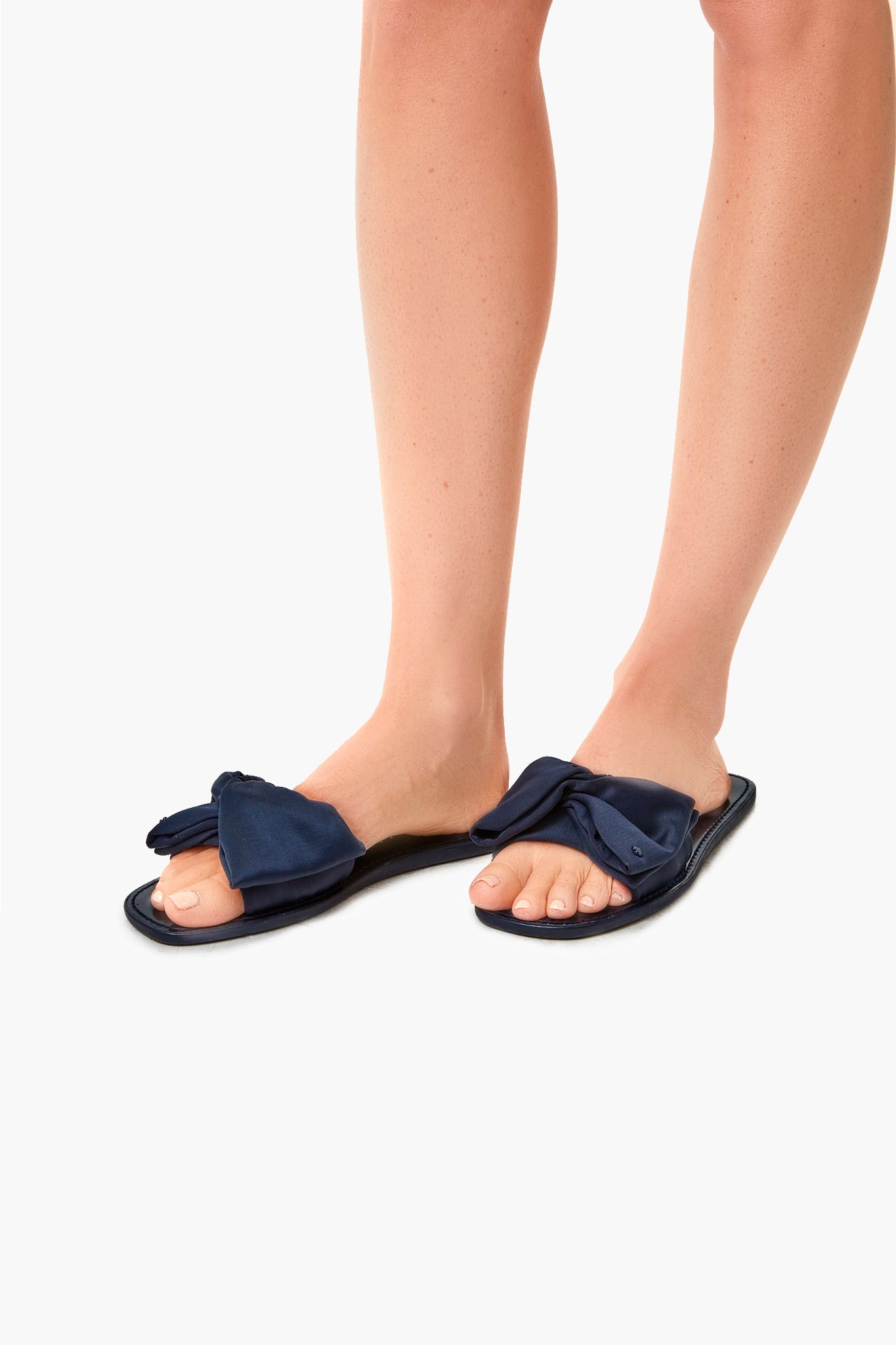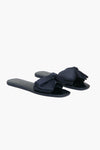 The Blazer Blue Bikini Sandal features a fabric bow and stitched sole. From vacation to picnics- these are a must-have for sunny days!