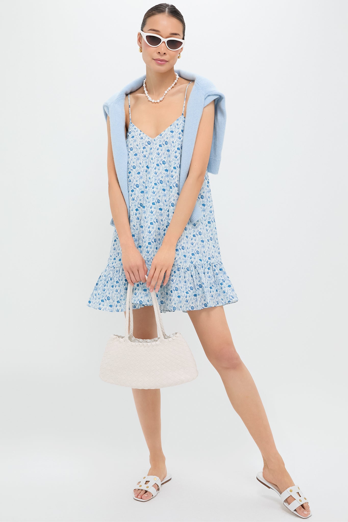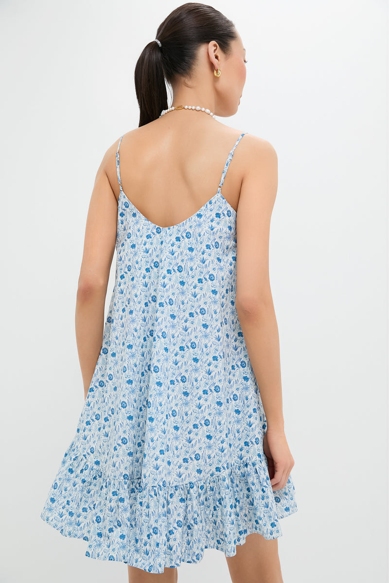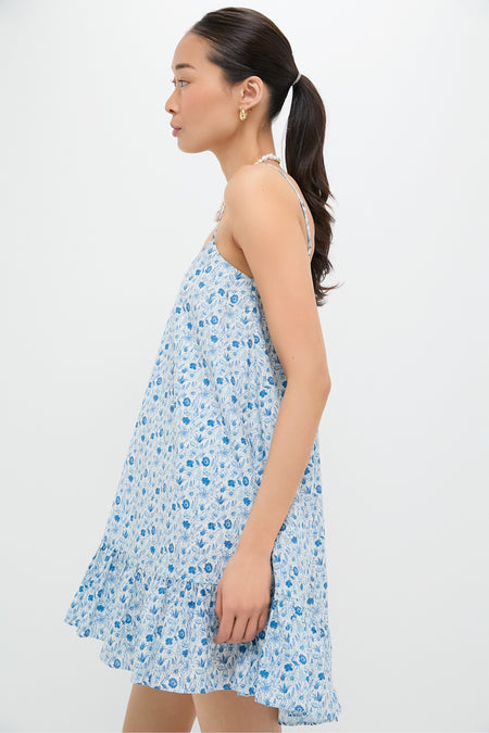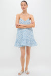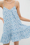 The Bayberry Mini Dress is your go-to for effortless charm, featuring a sweet blue and white ditsy floral print, a soft V neckline, and a flirty ruffled hem. Lightweight and swingy with slender straps, it’s made for sunshine—perfect for park strolls, brunch dates, or vacation lounging. Pair with strappy sandals or white sneakers and your favorite gold hoops.