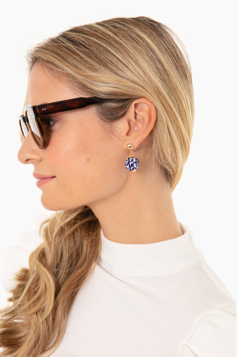 Handmade in New York, SHASHI jewelry is driven by the beauty of exotic cultures to create luxe one-of-a-kind pieces. Featuring an intricate blue and white floral pattern, the Refined Earrings have the perfect amount of glam with a stud detail. From chunky knits to feminine blouses, these earrings will take you from day to night.