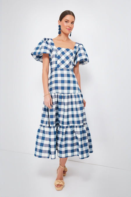In a quintessential spring pattern, the Blue Check Cassidy Dress is here to brighten things up a bit. With crisp shades of blue and white, this midi features a fitted bodice and a tiered A-line skirt that is ultra twirl-worthy, as well as an elegant square neckline and fresh puff sleeves. Perfect for picnics and parties alike, this stunner can be dressed up or down for any occasion this season.