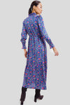 We are loving the Blue Chrysanthemum Satin Lucybella Maxi Dress for its easy elegance. This maxi features shirred turtleneck, drawstring waist, and a tiered ruffle hem for a feminine and sophisticated silhouette. Style for a fall wedding with tie up heels and gold jewelry, or pair with cowboy boots and a wide brim hat for your next trip to the countryside.