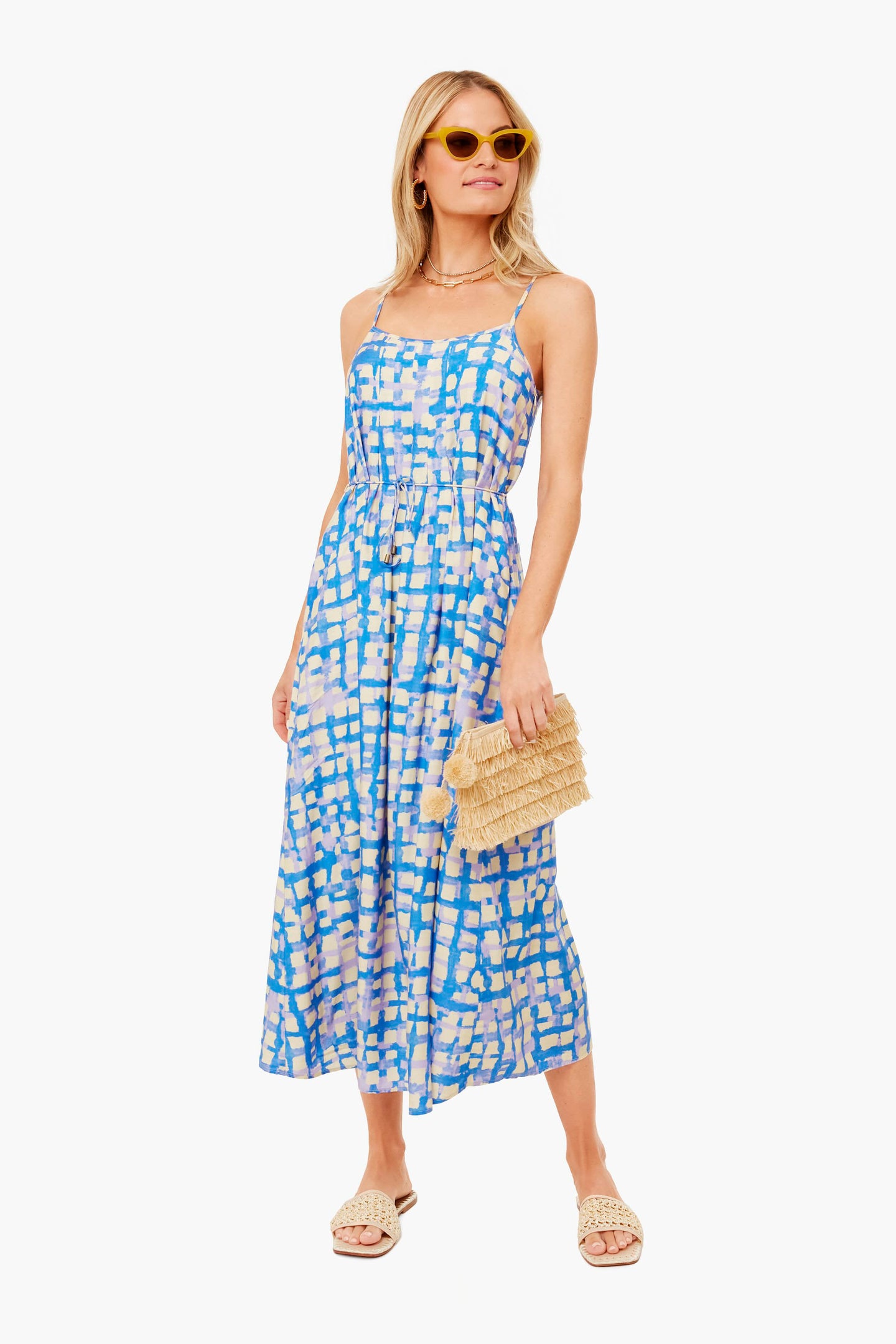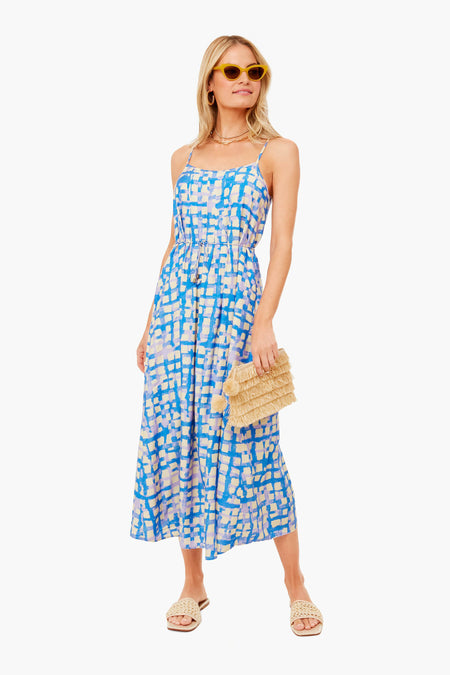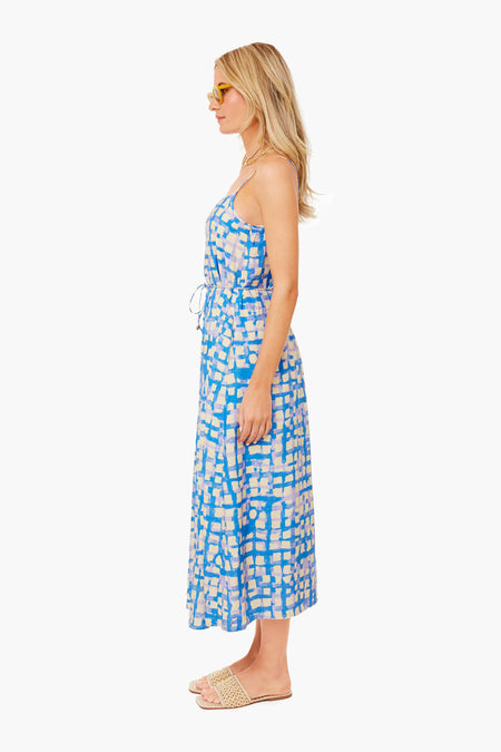 The Blue Cobblestone Rivers Dress is a breezy must-have, made from a silk-viscose blend with a colorful watercolor motif. This lightweight style features spaghetti straps and an optional tie at the waist. Dress up with heels and statement earrings or dress down with sandals and gold jewelry for date night.
