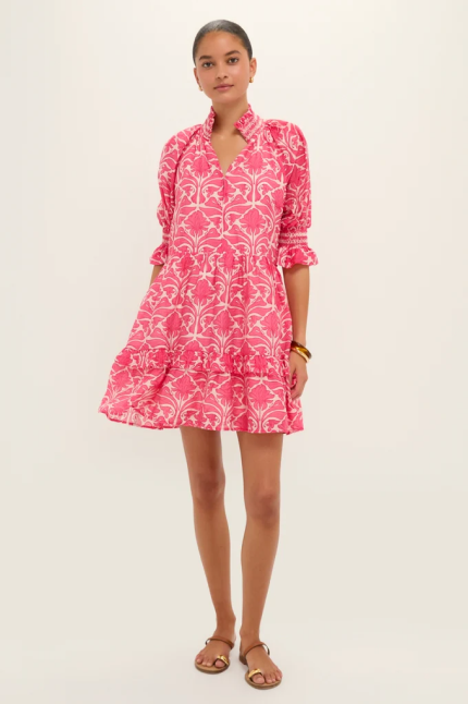 Embrace your playful side with the Deauville Short Dress. Handcrafted from 100% cotton, it features a spread collar, button placket, and drop waist detail. Its flirty silhouette and intricate style create a sense of whimsy, perfect for summer adventures and unforgettable moments.