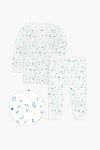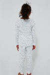 The Blue Floral Organic Long Sleeve Pajama Set will keep your toddler warm and cozy all night long. Made from the absolute softest cotton in the world, with a crew neck style top and cuffed pant, these modern toddler pjs are snug fitting to eliminate the need for flame retardants. Sustainably and ethically produced, they meet OEKO-TEX Standard 100 requirements - meaning they’re free of harmful chemicals like PFCs, PVC, and flame retardants. Now you can put your little one to rest knowing they're tucked in with the best!