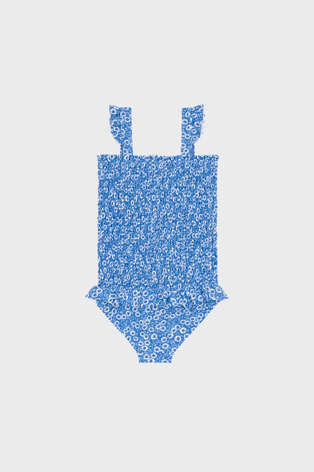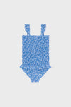 The Blue Floral Smocked One Piece with Ruffle Skirt features a chic square neck, ruffle straps, and a girly floral print. Fully lined for form and function in and out of the water, your little one will love this swimsuit for days spent out in the sun!