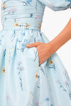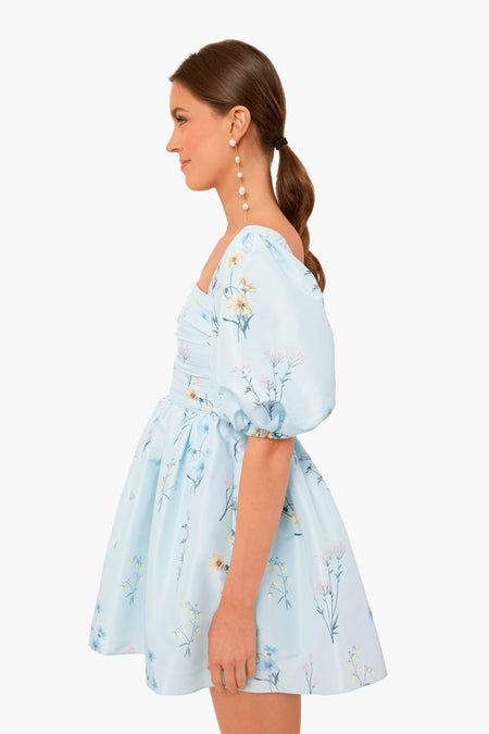 The Blue Floral Watercolour Taffeta Mini Dress features a flattering square neckline, statement puff sleeves, and side pockets. Fitted at the waist, this style falls to a full, sculptural mini skirt. Add pastel and pearl accessories for a look that is sure to make you the best-dressed guest.
