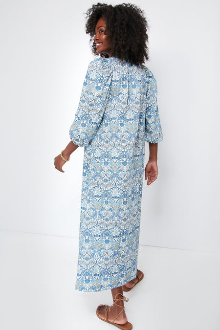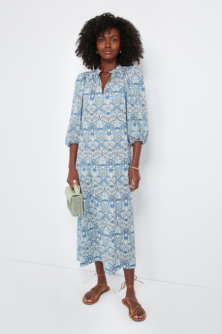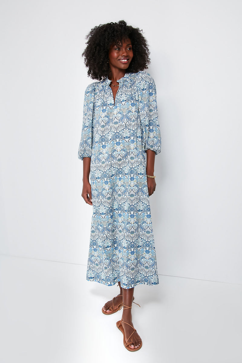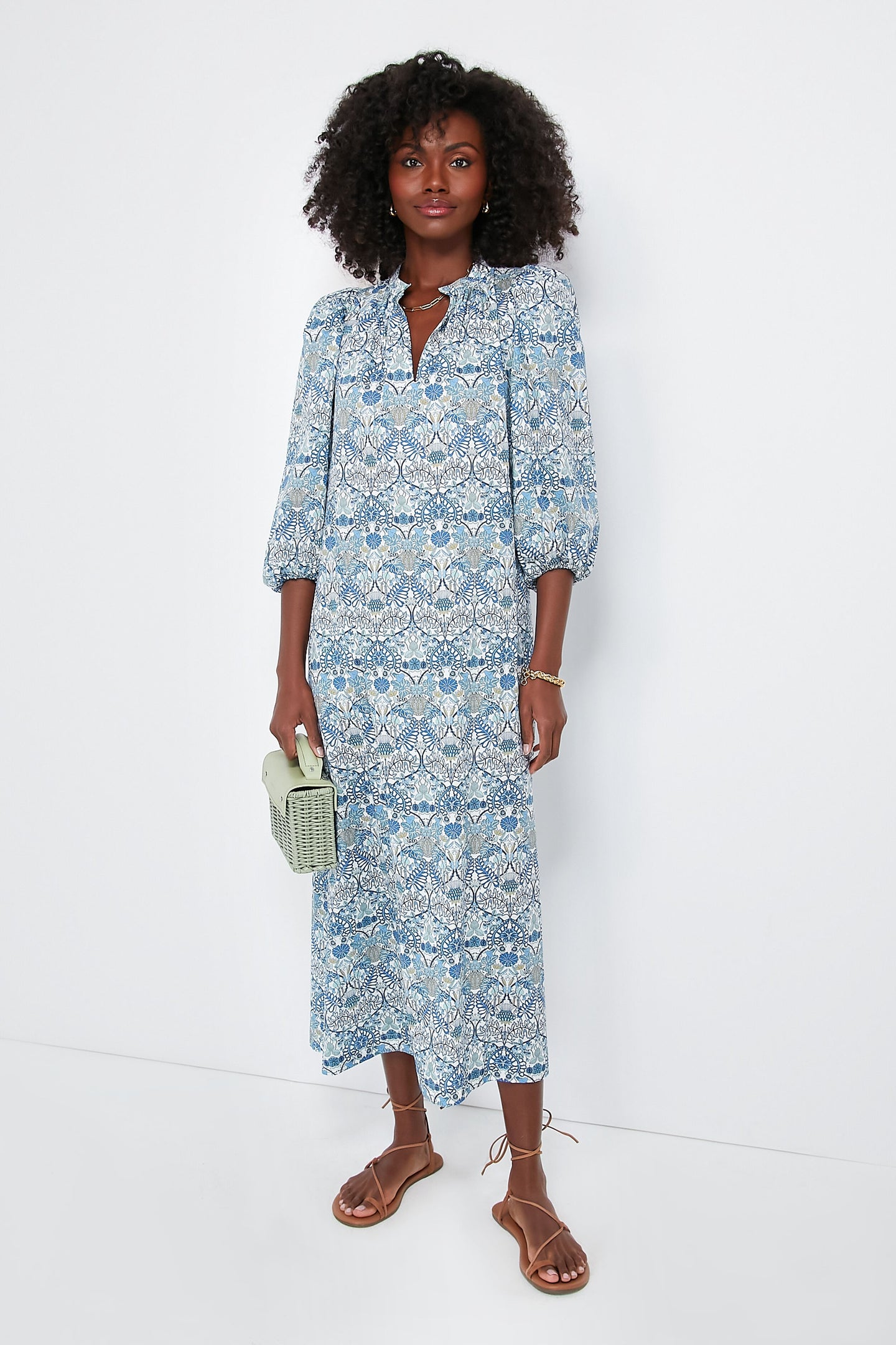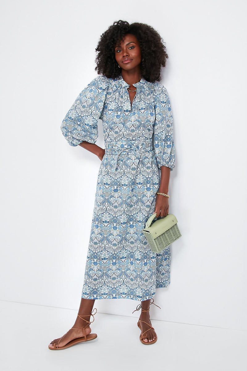 For dinner, drinks, dancing– or all of the above, the Allotment Maya Dress is the transitional number your wardrobe is missing. Its hard to choose our favorite detail from the delicate puffy sleeves to the notched neckline, but the relaxed silhouette which can be cinched with the matching waist belt definitely takes the lead. Designed using the most beautiful print, this midi has a very eye-catching effect with its blue tones, making the dress a timeless favorite that can be used for both everyday and occasion wear. From sandals to heels, we are adding gold accessories and letting the compliments roll in.