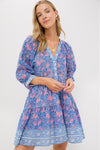 The Blue Pink Printed Clara Mini Dress is unapologetically sweet and summery. This cotton blend number features charming puff sleeves, front button closure, and contrast borders all over for a unique and feminine finish. Pair with sandals and a tote for easy lunch attire, or pair with wedges and a clutch for Al Fresco evening affairs!