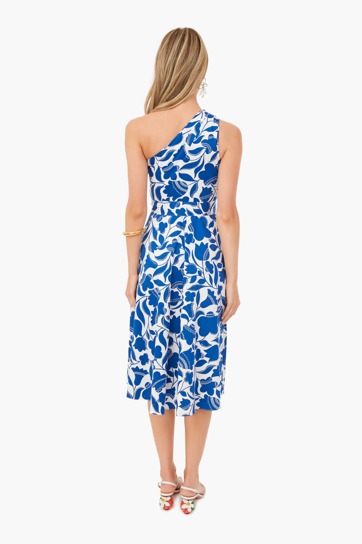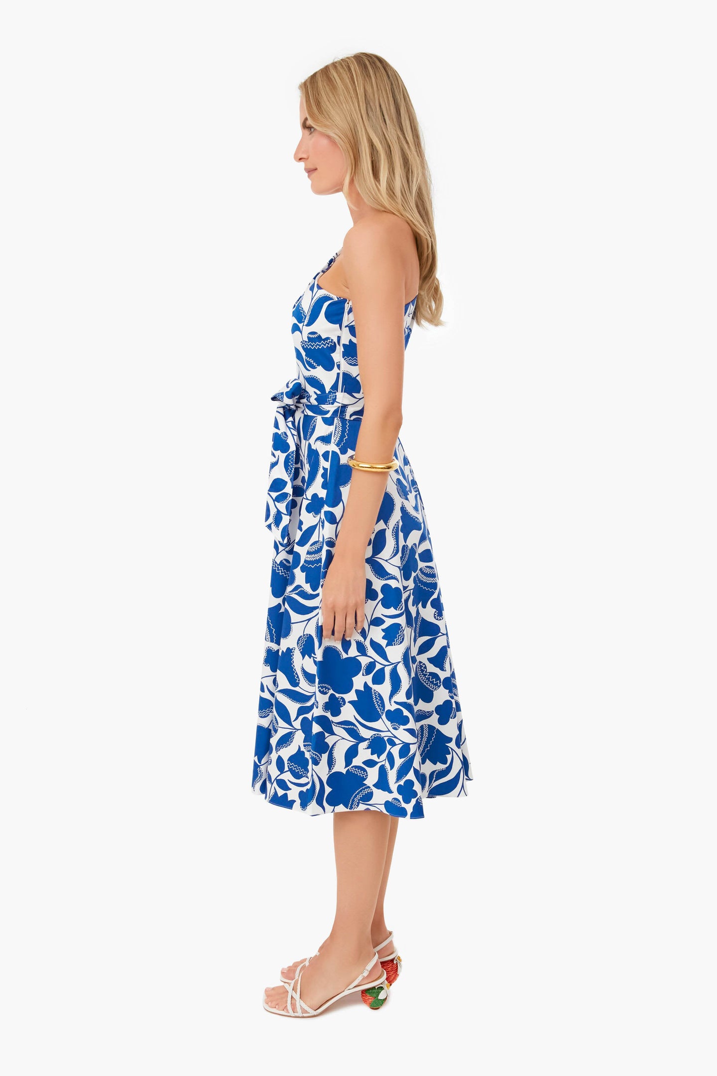 The Blueberry Zig Zag Floral Belted Sabrina Dress features an asymmetric bow-tied bodice and a beautiful floral motif. This poplin fit-and-flare number is perfect for summer garden parties or seaside weddings. Complete the look with strappy sandals and a clutch.