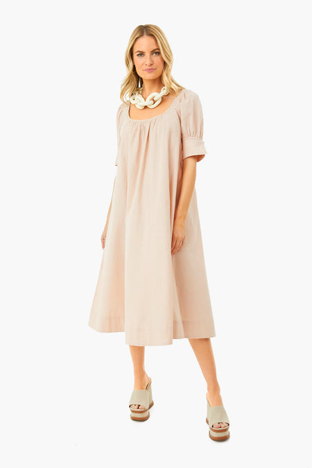 Easy, feminine, and beautiful, The Miela Dress is the perfect one-step outfit to wear year-round. Featuring a scoop neck, short puff sleeves, and a swingy A-line midi skirt, this style is a versatile wardrobe staple. Pair with raffia sandals and statement jewelry for a tropical getaway or a denim jacket and boots for chilly weather!