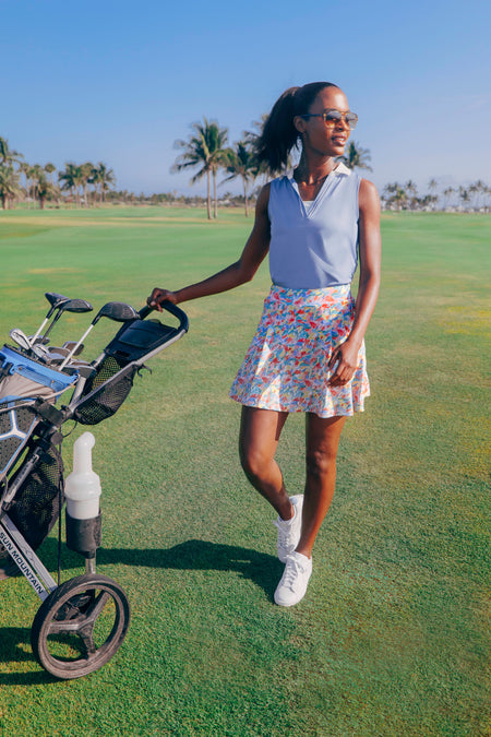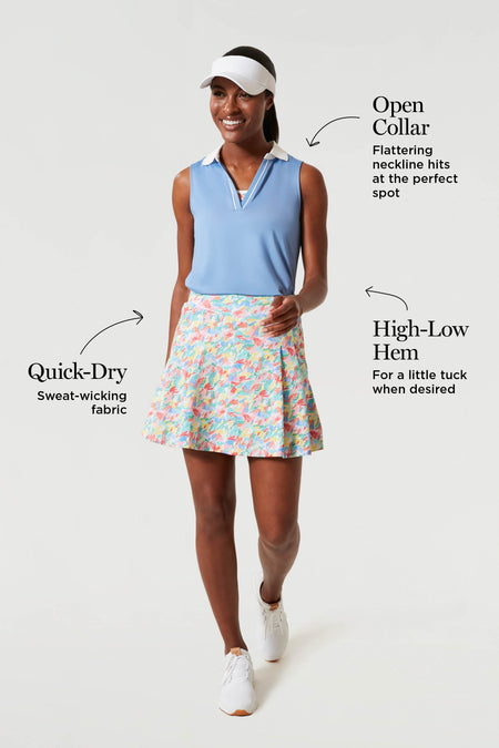 Be ready to take a swing at the Masters in the Sleeveless Caroline Polo. With sweat wicking material and UPF 30 performance, warm days at the course will feel like nothing. Style as a matching set or with a white sport skirt and it’s perfect for any outdoor occasion.
