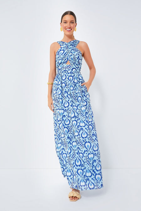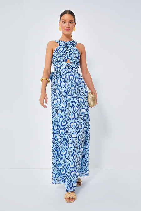 The Bosphorus Sage Dress is a spectacular yet effortless maxi that's ready to make an entrance. Incredibly flattering thanks to its adjustable fit, this bold ikat style is not only vibrant in print but also outstanding when it comes to silhouettes. Plus, the front cutout and open back add just the right amount of sultry sass. Add raffia heels and gold accessories for an updated look that'll turn heads.