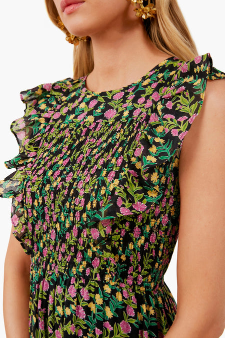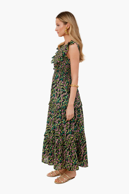 Endless tendrils of flowers reach and bloom towards the sunshine and good times ahead on the Boundless Floral Black Iris Dress. Joyful and versatile, this maxi has a smocked bodice, flutter sleeves, side pockets, ruffle accents, and a flattering silhouette. Pair with statement earrings and sandals for a tropical getaway!