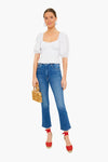 The Broken Record Smokin Double Ankle is a high-rise flare with a narrow leg, ankle-length inseam, and a clean hem. Cut from semi-rigid superior denim, this style has a mid-blue wash with light fading and whiskering. Add a feminine top and colorful shoes for a fun and playful look.
