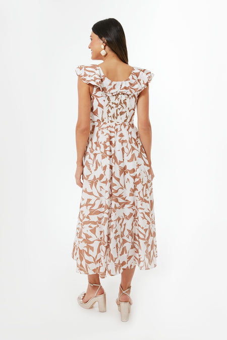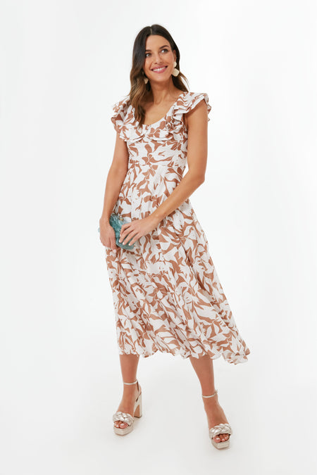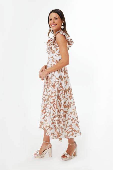 Elevated and daring, we are loving everything the Priya Dress has to offer. In an abstract brown floral print, this maxi features a flattering scoop neckline complete with flutter detailing, a smocked back for the perfect fit, and a flare skirt that effortlessly floats off your body. Pair with heels and neutral accessories to let the dress have it's moment.
