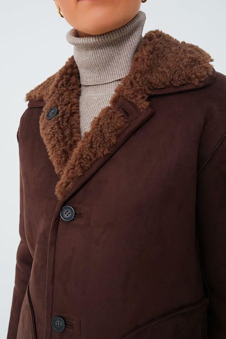 Make this your statement piece for chilly weather ahead — because the Cacao Vanna Jacket is all kinds of cool. Reversible so you'll never get bored of styling it in clever new ways, this chic coat has one faux fur side and one suede side, both done in an ultra-luxe yet neutral chocolatey brown hue. Complete with a rounded collar, a front button closure, and hip pockets, you'll be wearing this coat with everything from denim to mini skirts with tights, from daytime to evening plans!