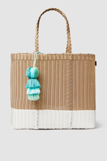The Cafe con Leche Large Citron Bag is the definition of true craftsmanship. These totes are ethically made by a group of Mexican artisans in correction centers and create sustainable jobs to help support their families. It takes two to three days to hand-weave each style from 100% recycled plastic. Not only can you be confident in where your bag comes from, but the neutral silhouette and colorful poms are sure to add a joyful touch to your day to day whether you're headed to the beach or running errands!