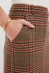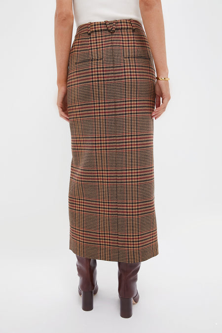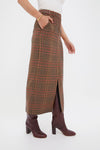 An essential, elevated. The Maxine Skirt is expertly tailored. This streamlined maxi skirt features a classic fall-friendly plaid, high waist, and front slit. This wardrobe staple pairs well with jackets, knits, and tees alike. We chose to pair it with the matching Nate Top, boots, and a chic purse.