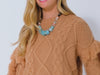 The Camel Francesca Fringe Sweater will keep you cozy without compromising style! This classic yet of-the-moment piece is an easy choice for when you want to keep it simple, but want to add a bit of drama to your ensemble. Whether you pair it with your favorite jeans or skirt, this crewneck is sure to gather compliments.