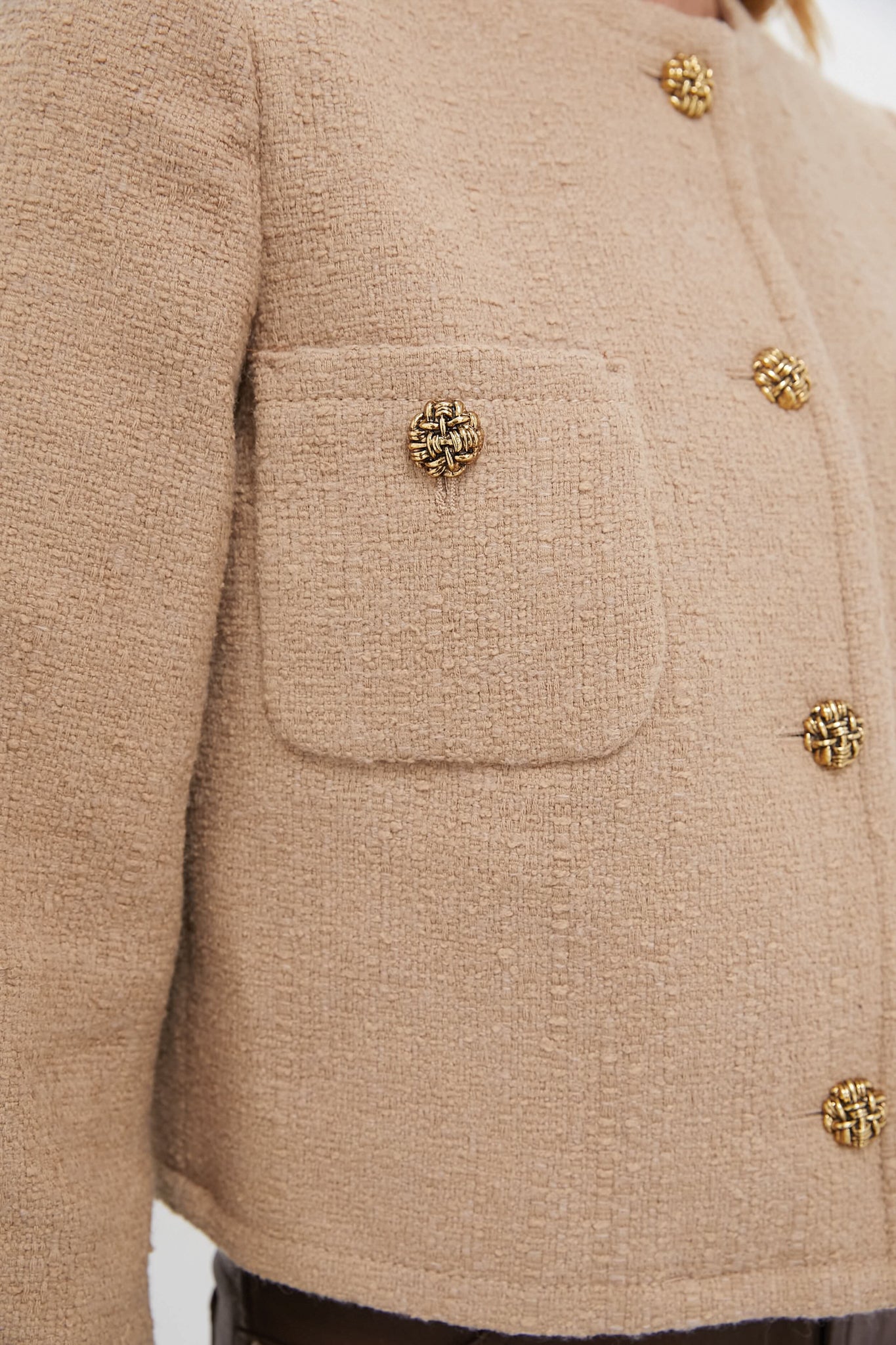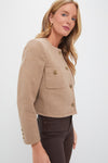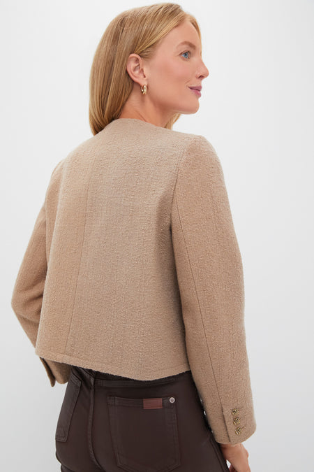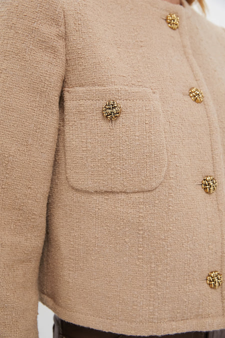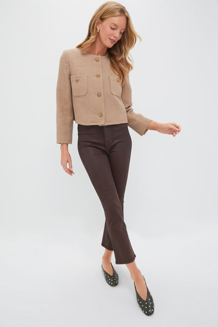 The Meredith Jacket is a classic jacket for your wardrobe. Featuring a boxy fit, gold-tone button placket, patch breast pockets, this piece can elevate any outfit. We chose to pair it with brown leather coat jeans, ballet flats, and a suede bag.