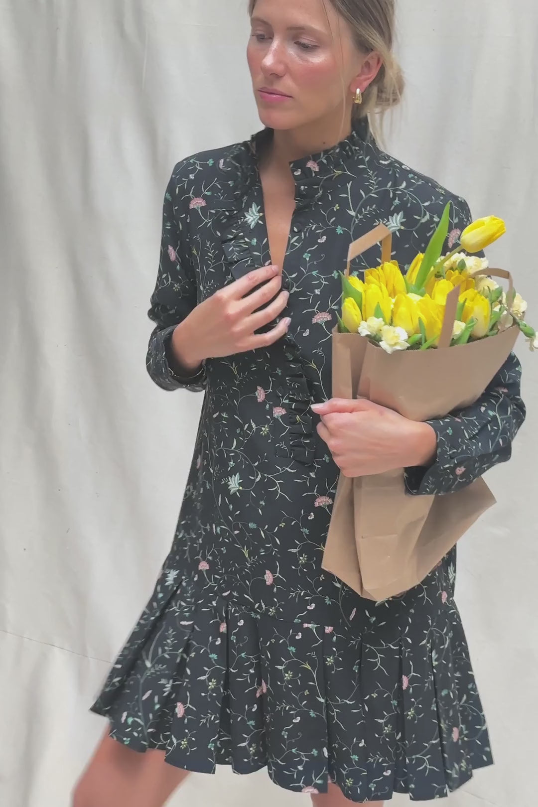 An update to the closet staple shirt dress we love, the Campden Vine Tate now features a gorgeous floral print that can be dressed up or down, season after season. This style seamlessly combines sophisticated details like a ruffle collar and a half placket, a perfectly pleated swing skirt, and the best part, a boxy silhouette that isn't too tight but is ultra-trendy. Easily encapsulating unfussy femininity, this mini is a four season stunner that will take you from the boardroom to brunch with ease and style.