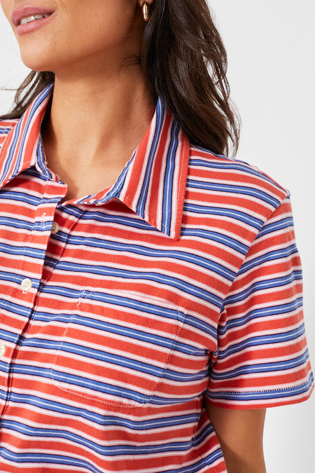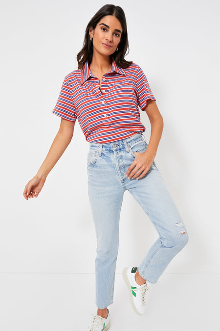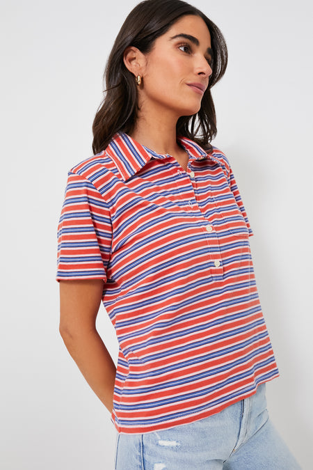 A contemporary twist on the classic silhouette - the Campervan Stripe Lacrosse Polo is the ultimate cool casual top. Featuring perfectly proportioned short sleeves, a deep plunging placket, and a straight-cut silhouette that skims the body, ending just above the hips, wear this top with everything from shorts to denim to leggings for off-duty weekend dressing.