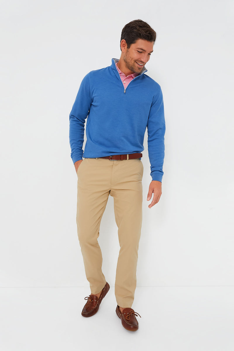 Crafted with a piqué stitch from a soft cotton-modal blend, the Cape Blue Crown Pullover offers sweatshirt-like comfort in a classic quarter-zip style. Featuring a stand collar and four-way stretch, this versatile layer can easily transition from casual workplaces to the weekend. Style with khakis, loafers, and a button-down for the office, or pair with denim, a graphic tee, and sneakers for outdoor adventures.