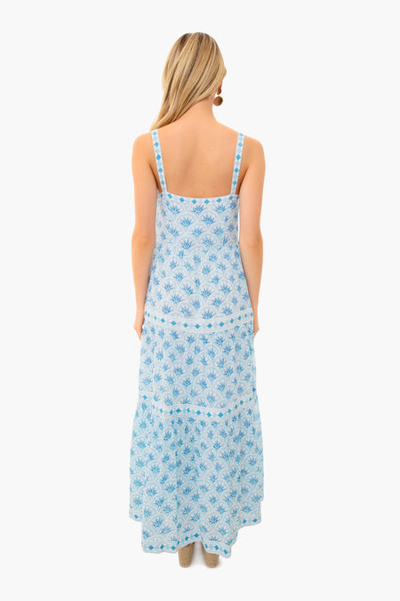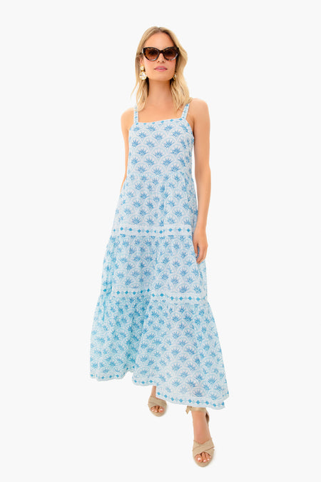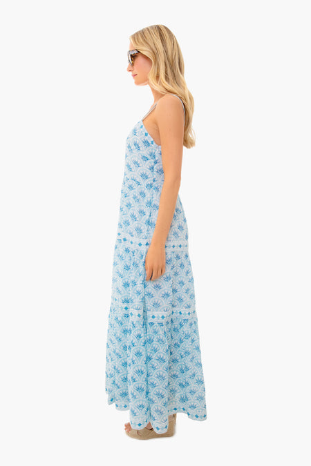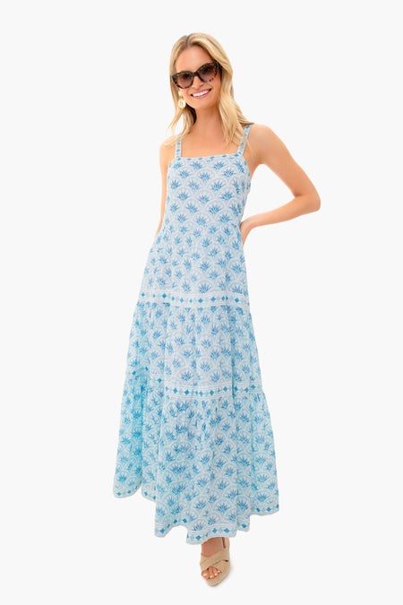 The Capella Blue Strappy Maxi Dress features wide shoulder straps and contrasting print at the neckline and skirt. This laid-back style is a mix of coastal and bohemian influences. Pair with wedges and sunglasses for a beachside wedding or day spent exploring an outdoor garden!