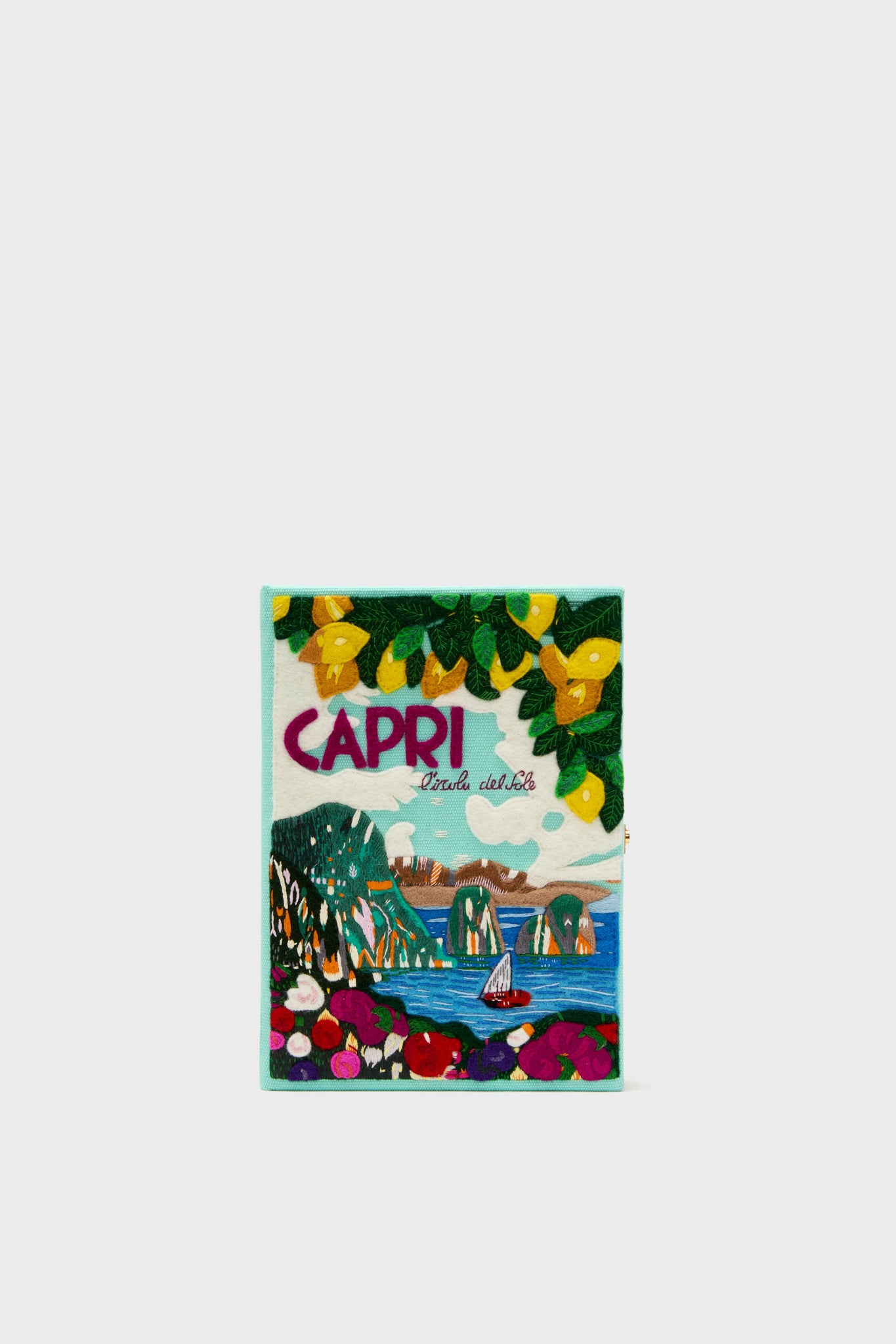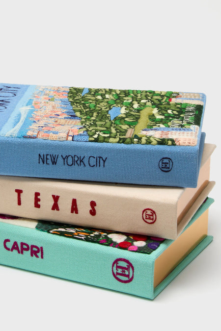 Designed to resemble a classic book, the Capri Book Clutch has a stainless steel frame covered with hand embroidered silk thread and felt applique. Perfect for book lovers and fashion enthusiasts alike, wear it to book clubs, or any special occasion to add a touch of whimsy and elegance to your outfit.