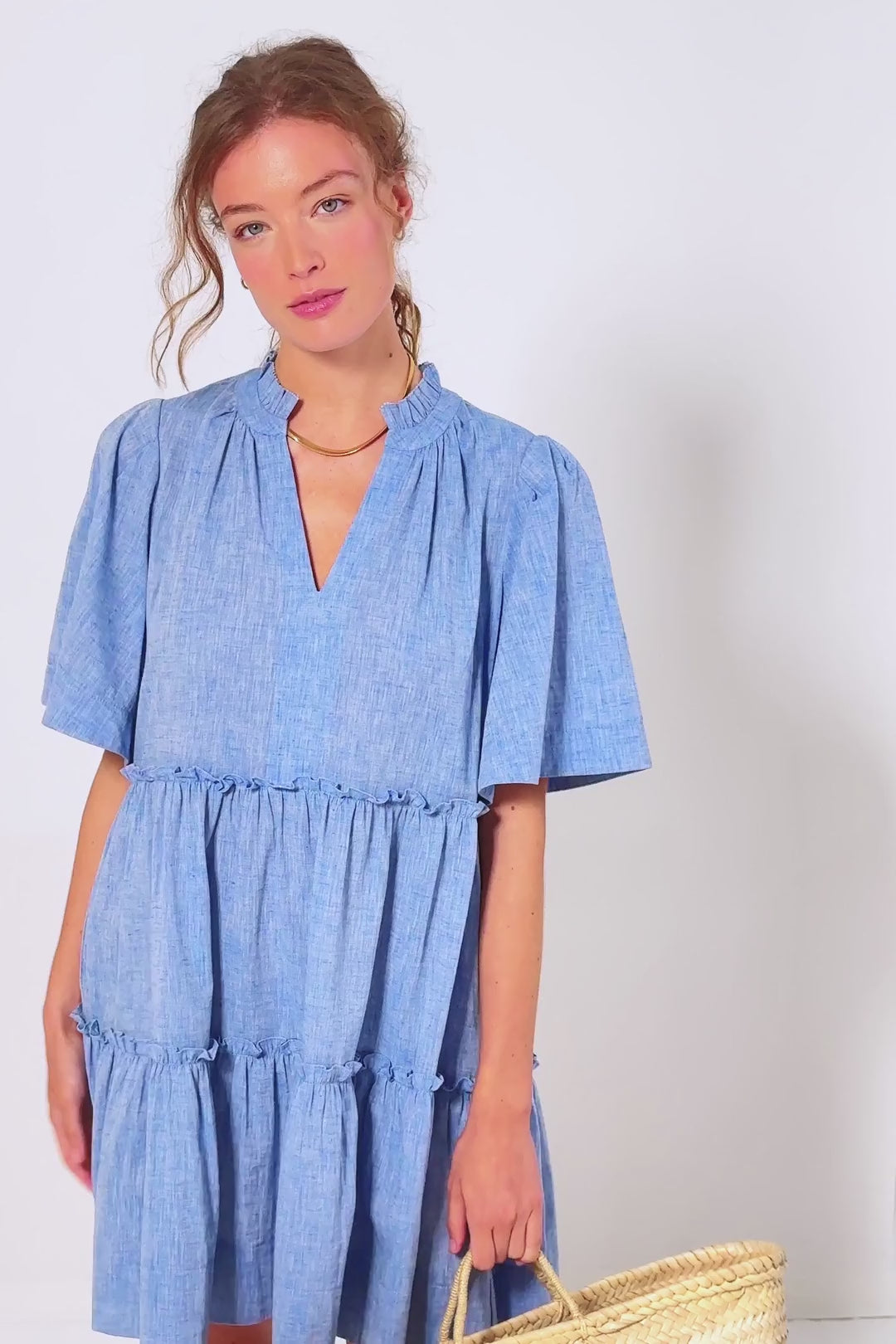 The Chambray Crawford Dress is exactly what we have been searching for — that perfect warm weather piece that you can throw on for morning cappuccinos and wear until cocktail hour. Featuring oversized flutter sleeves, ruffle detailing on the neckline and skirt, and a swing silhouette in a timeless blue hue, this mini is the most flattering and flirty frock. Effortlessly whisking you from work to play, pair with sneakers and sunnies for a casual look then switch to wedges and statement earrings for an easy date night outfit!
