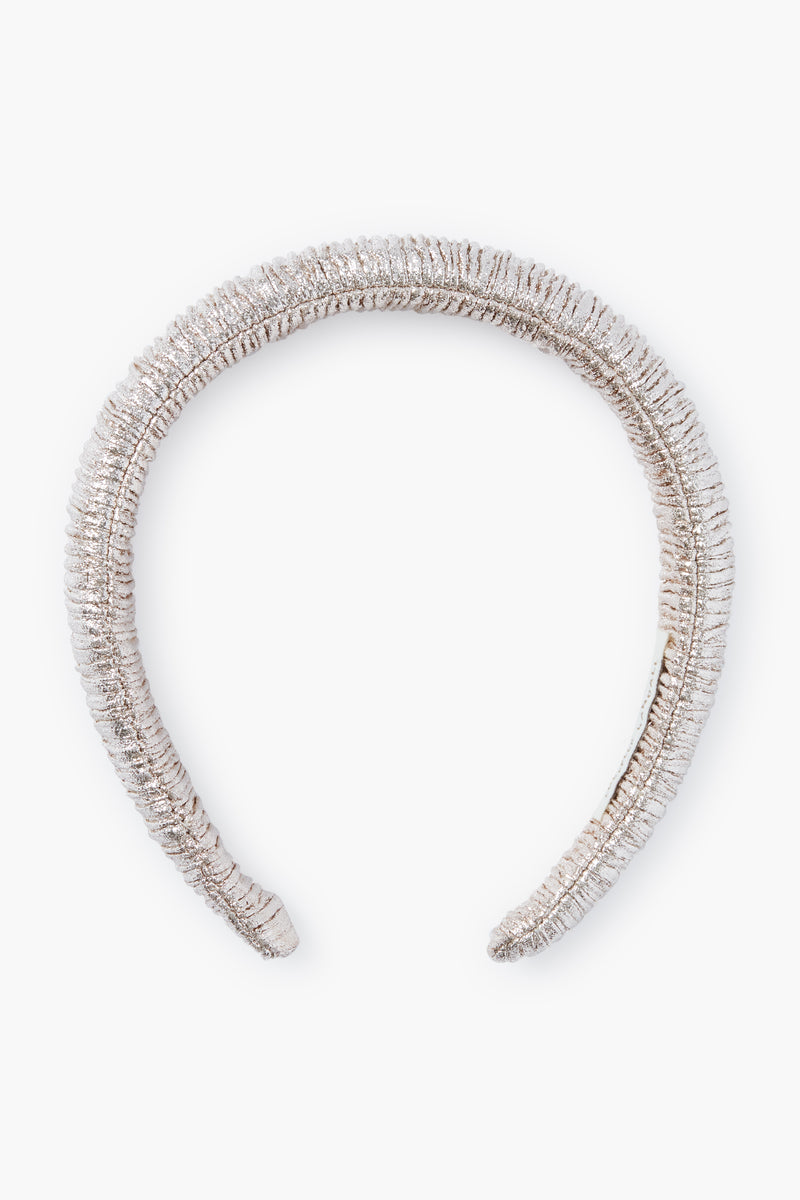 The Marina Puffy Headband features intricate pleated detailing with a slight bit of volume for a casual yet chic look. In a shimmery champagne lamé, this metallic hair accessory will complement any hair color or outfit choice! Dress up with a sundress or down with boyfriend jeans and a basic tee!