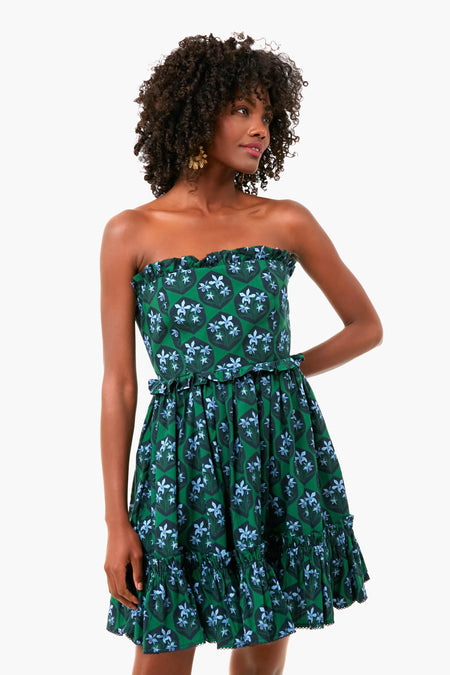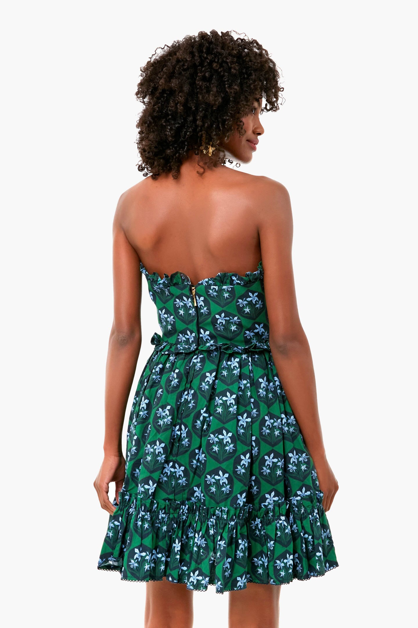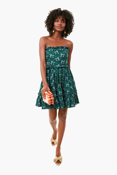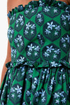 Perfect for your next tropical escape, the Rosa Dress is cut from cotton poplin decorated with rich florals and dainty ruffled trims. A feminine and boho strapless silhouette make this mini perfect for sunny days. Style this for a daytime lunch with flat sandals and a cardigan or for an evening date night with heels and fun jewelry.