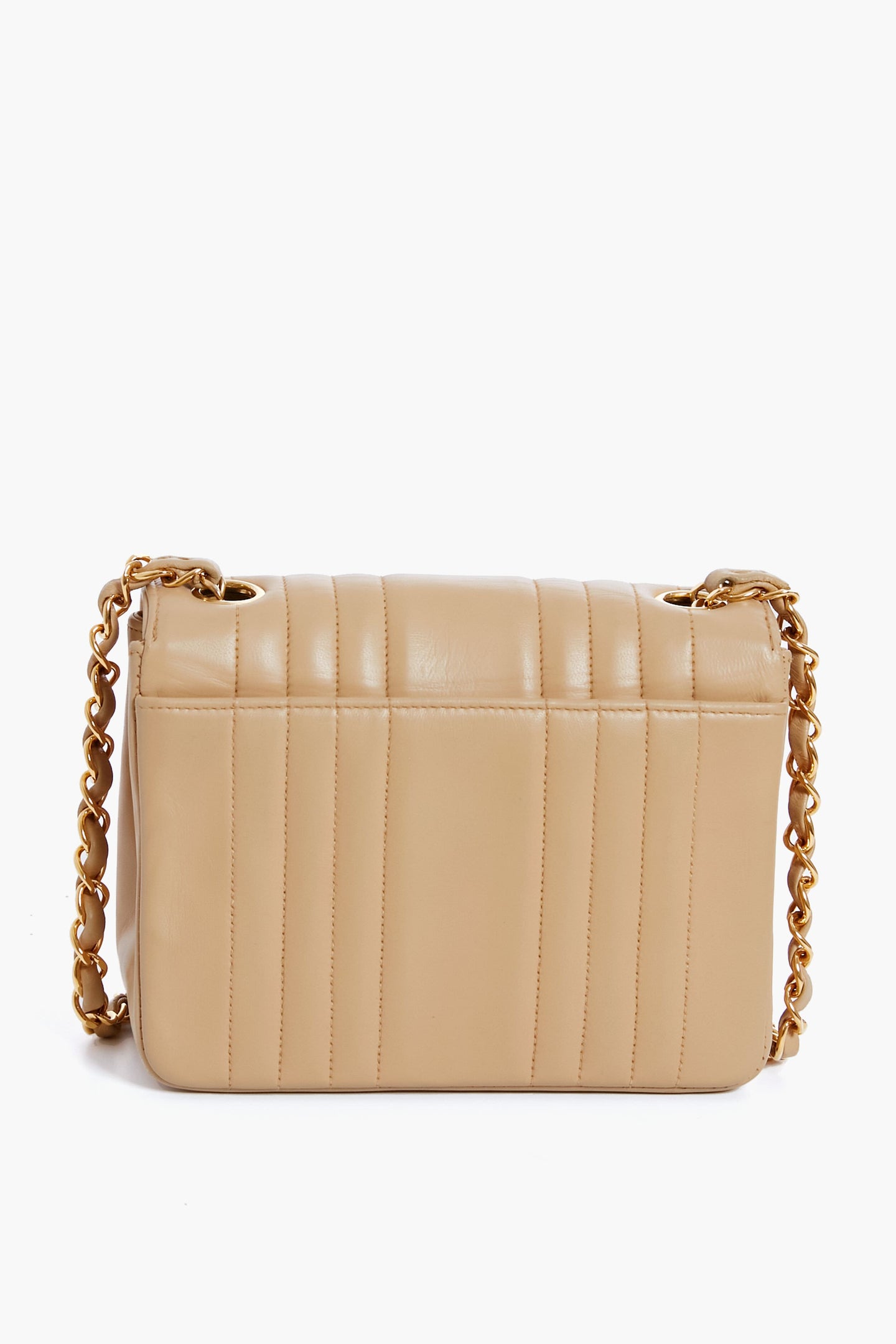 - Material: Quilted Lambskin Leather, Lining: Beige Leather