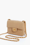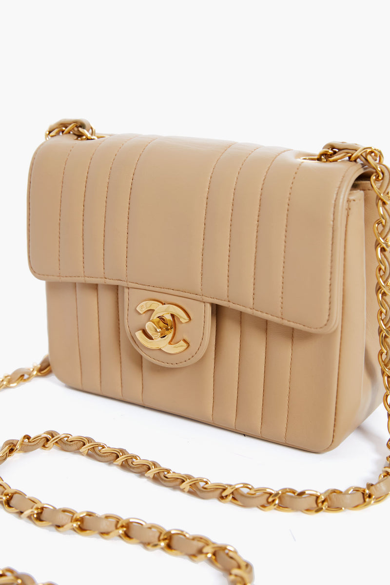 Chanel is a byword for effortless Parisian chic, and the Beige Mademoiselle Mini Mastrasse Shoulder Bag is no different. The brand has always stood for comfortability, so Coco decided to create a bag that would allow women to keep their hands free, and the shoulder strap design took off. With recognizable design features such as a rectangular shape, a top flap, and the interlocking C turnlock closure, this bag stands for femininity and sophistication. This timeless silhouette made from lambskin leather features vertical quilting, as well as an interior zip pocket and flap pocket to ensure you are able to carry your essentials with the utmost grace and elegance.
