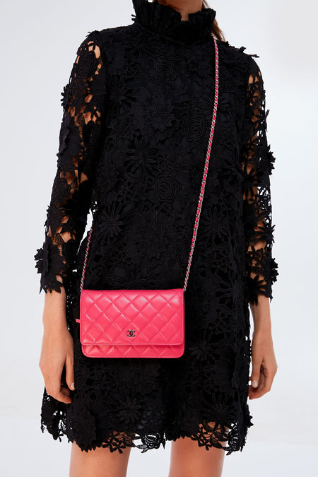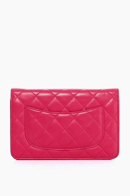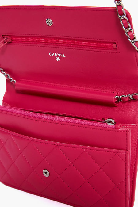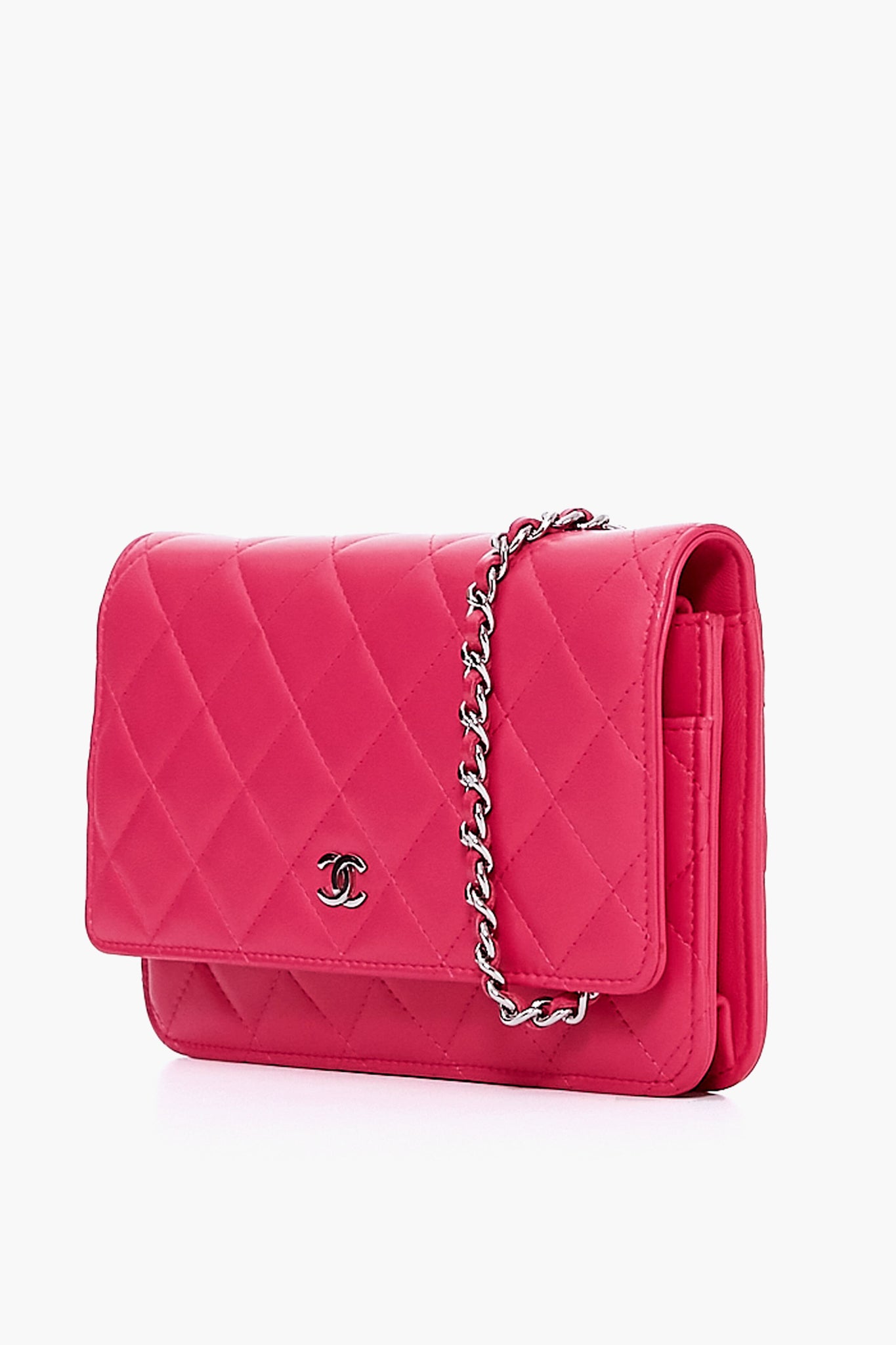 The CHANEL Pink Lambskin Wallet on Chain is the epitome of class, glamor, and tradition. Blurring the line between a wallet and a bag, this number is for the minimalist who craves hands-free convenience without sacrificing style. The hot pink quilted lambskin exterior evokes a timeless elegance in a bold colorway. With a flap snap closure, the interior is filled with thoughtful, functional details including zip pockets, card slots, and a flat pocket to keep your belongings secure and organized. Finished with silver hardware for a modern, contemporary feel, you’re able to wear this style as a crossbody, shoulder bag, or carry it as a clutch and tuck in the chain. Chic and effortless, this bag is a must-have for all the fashionistas out there.
