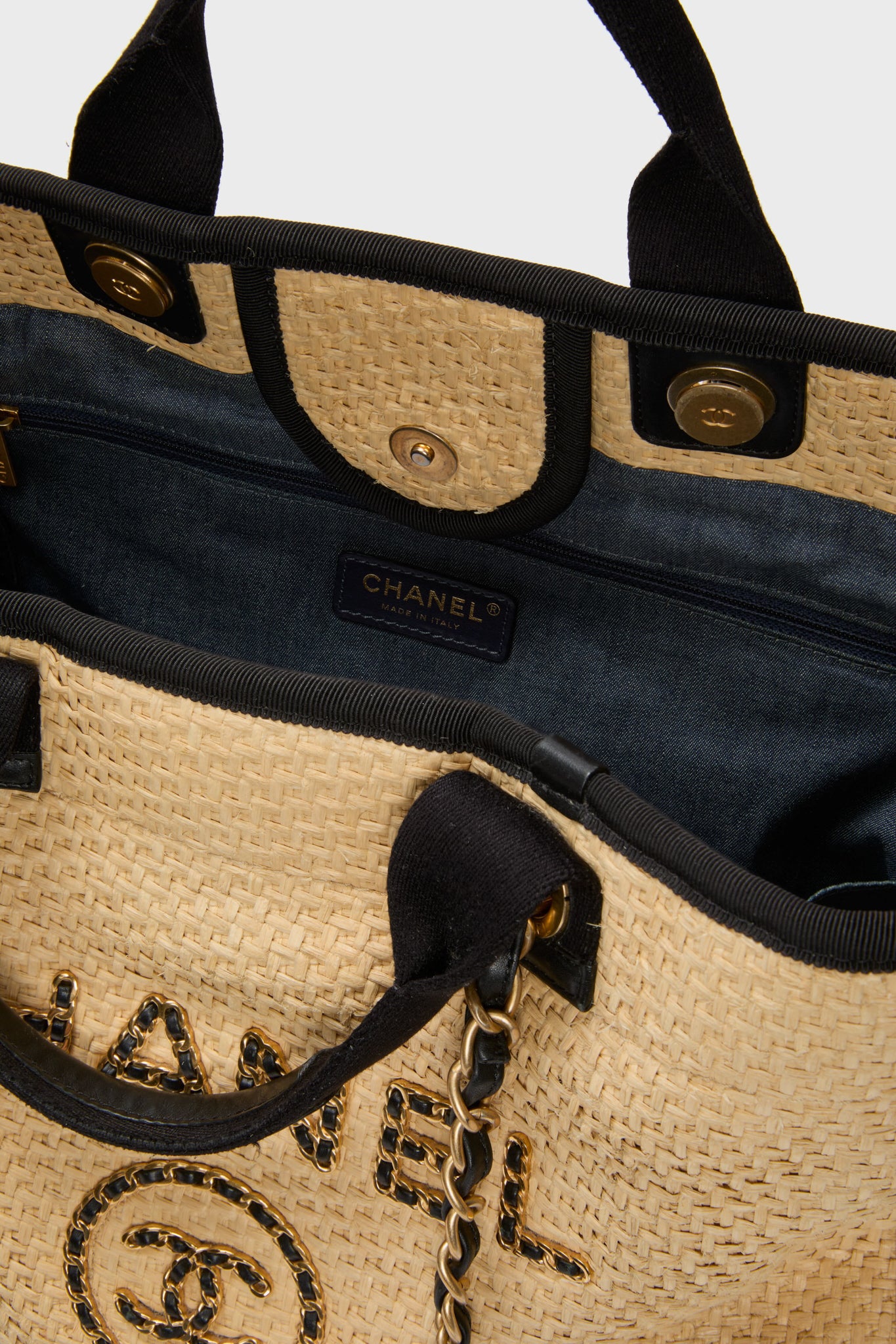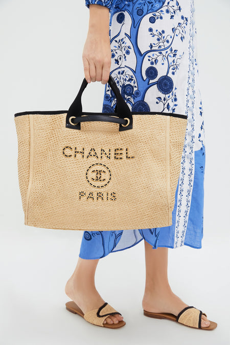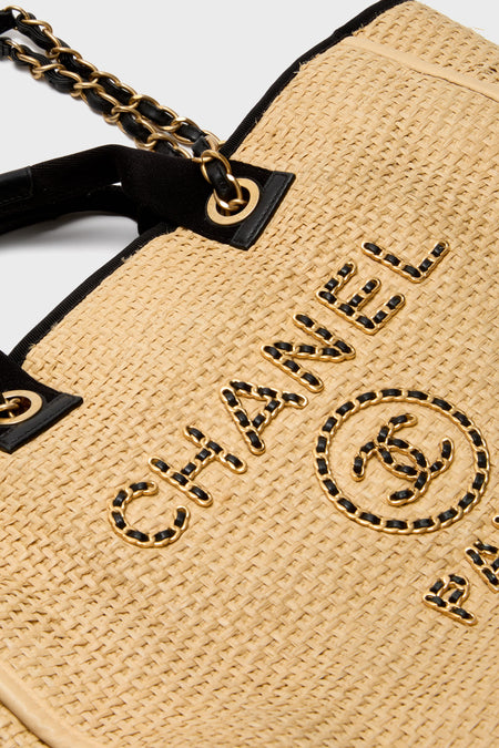 CHANEL Straw Raffia Deauville MM Tote Bag