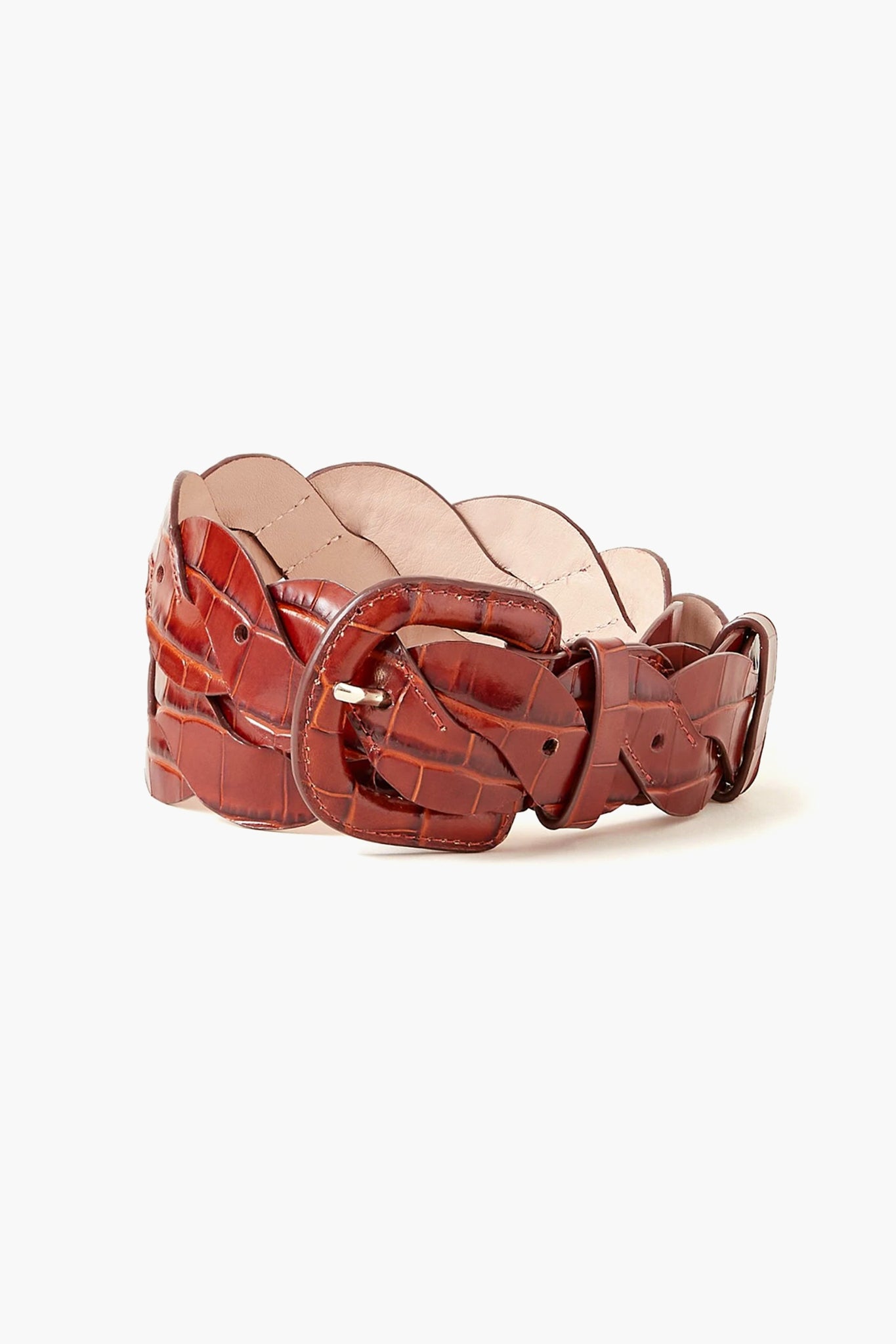 Loeffler Randall is a female-founded brand known for expertly designed shoes and accessories that have soul and a story to tell. The Chestnut Deidre Wavy Pieced Belt is scallop-woven in chestnut croc-embossed leather with a wrapped buckle. Pair with dresses and skirts to elevate your look!