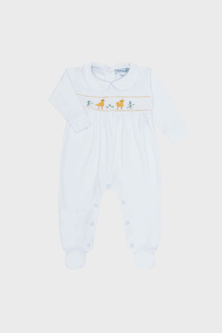 The Chicks Smocked Footies is the epitome of cuteness and love for your precious little one. Designed to keep your baby snug, cozy, and irresistibly adorable, it features an enchanting smocked design adorned with charming little chicks, making your baby the center of attention wherever they go.