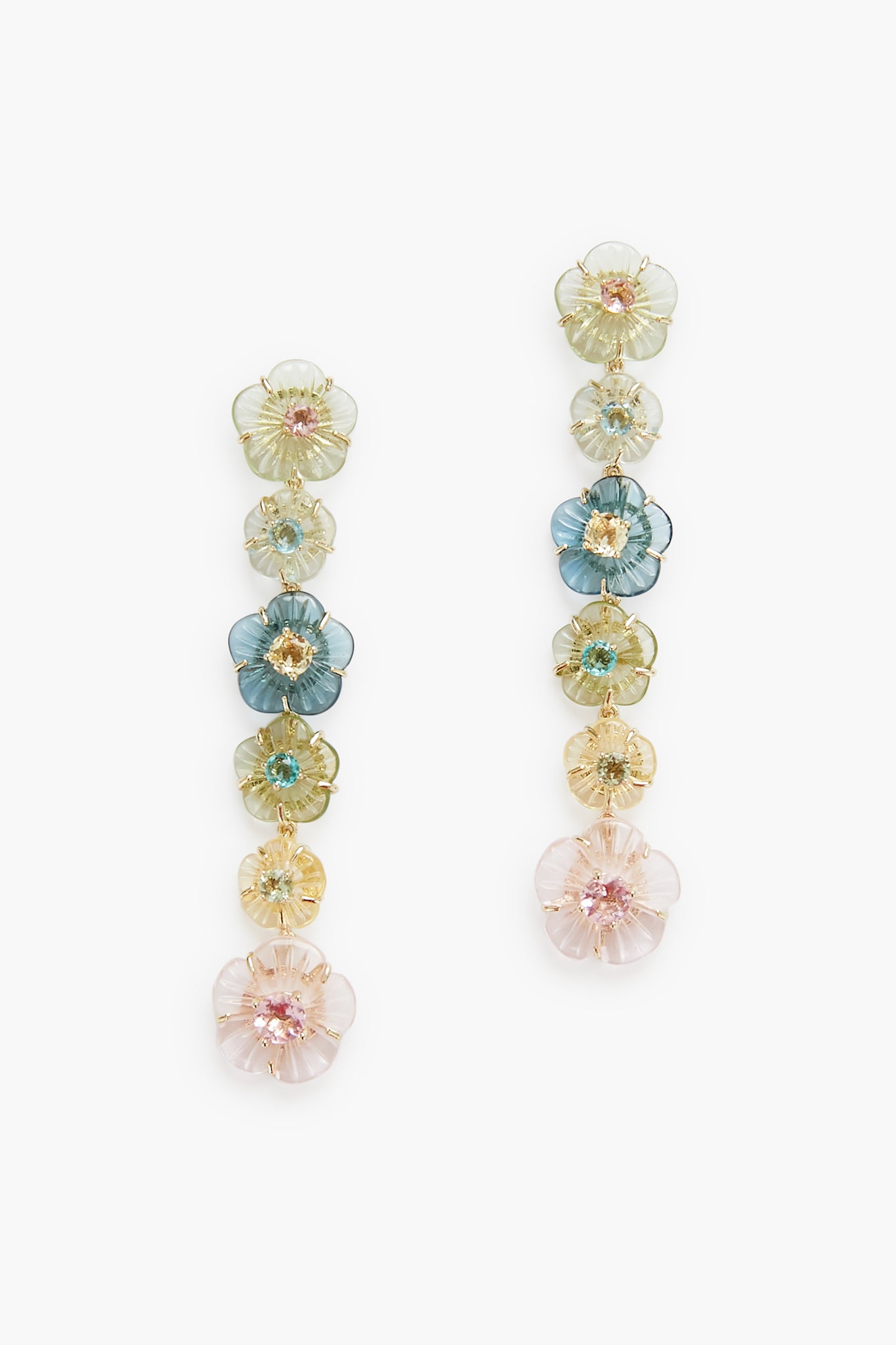The Long Floral Drop Earrings are part of a chinoiserie-inspired collection. Adorned with hand carved botanical buds and blooms, golden vines, and a mixture of rich and muted jewel tones, these are a special must-have. Add these to any outfit- dresses, denim, or sweaters for a feminine and unique look.