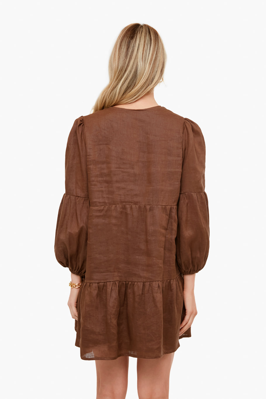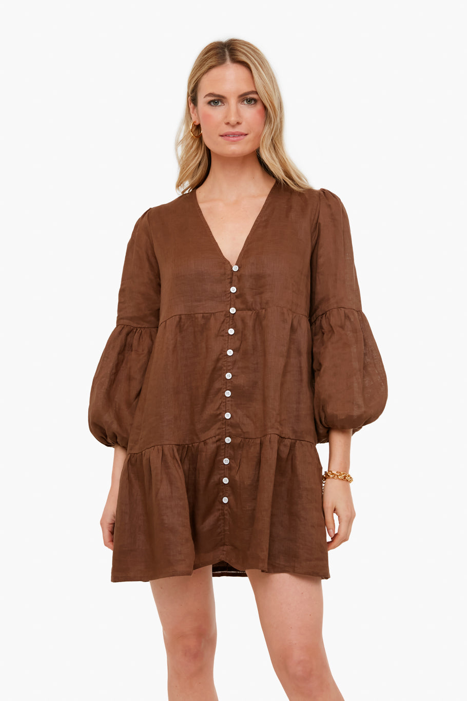 Crafted from sustainably sourced linen, the Chocolate Dija Mini Dress has an effortless mini silhouette with dramatic puff sleeves. Take it on your next trip to layer over swimsuits or pair with sandals for al fresco dinners.