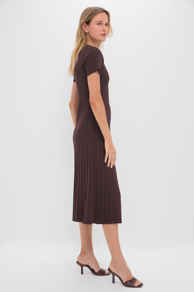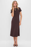 It doesn't get better than this dress- a chic knit midi made from a soft, stretchy fabric in a rich chocolate colorway. Perfect for styling for every occasion this season, we are pairing with a chunky sweater and boots or with heels and a belt!