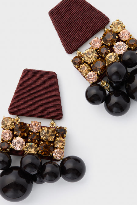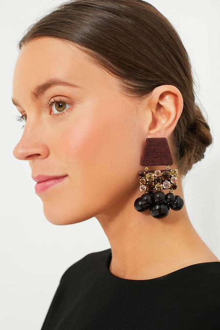 The Chocolate Olivia Earrings add a little extra fun to your fall party wardrobe. More is more with these lightweight earrings made with shimmery glass stones, faux silk cord, and acrylic sphere drops. With an eye for detail, the post placement was carefully considered for optimal ear coverage and movement. A founder favorite, we are topping off our cocktail attire with these sparkling stunners for standout style!