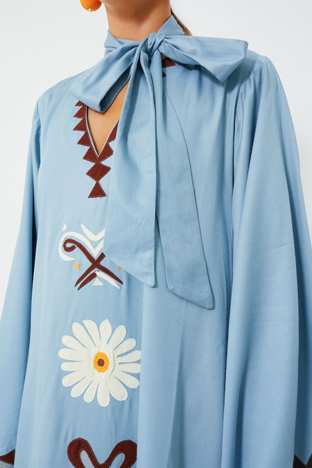 Comfortable to the core, the Cloud Lena Kaftan is flowy and flattering. This blue number drapes beautifully on the body and features a V-neckline with self-tie closure, three-quarter kimono sleeves, and stunning floral and geometric motifs throughout. Perfect for all day, everyday wear, this style can be worn over a swimsuit for poolside fun, or can be dressed up with heels and statement earrings for a sunset cruise with your boo!