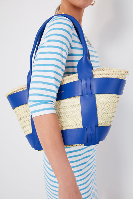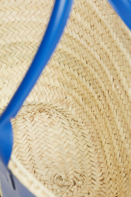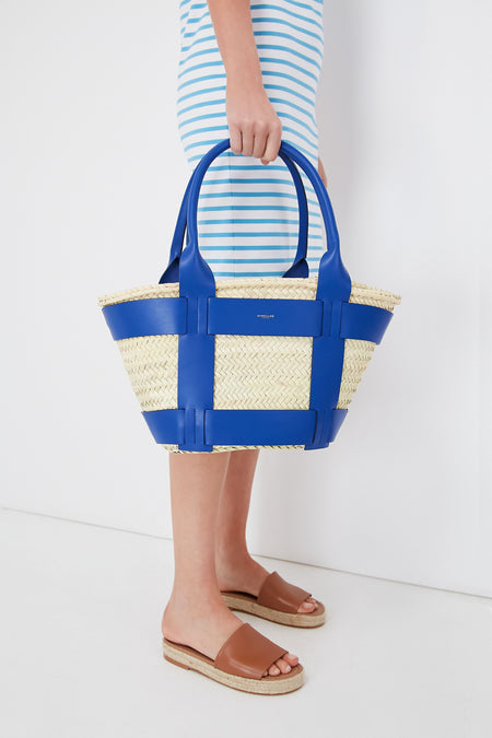 If you are loving the raffia bag trend this season, but looking for something a little bit more luxe and elevated, the Cobalt Blue Santorini Bag is here to deliver. Easily fitting anything you could need to head to the beach or pool, this structured silhouette is crafted from handwoven palm leaves with a raw-edge leather harness detail. Two comfortable tubular handles allow it to be carried by hand or over the shoulder, giving you the styling versatility needed to pair it with anything from breezy caftans to white denim.