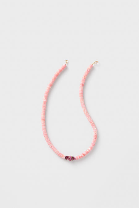 The Conch With Ruby Barrel Bead Necklace is a one of a kind piece, reminding us of those pink sandy beaches. Artfully arranged in a gentle gradient for a soft, feminine finish. Each stone is one of a kind, giving this piece a unique glow that catches the light beautifully. Dress it up for a romantic evening or layer it with gold chains for a fresh, everyday statement.