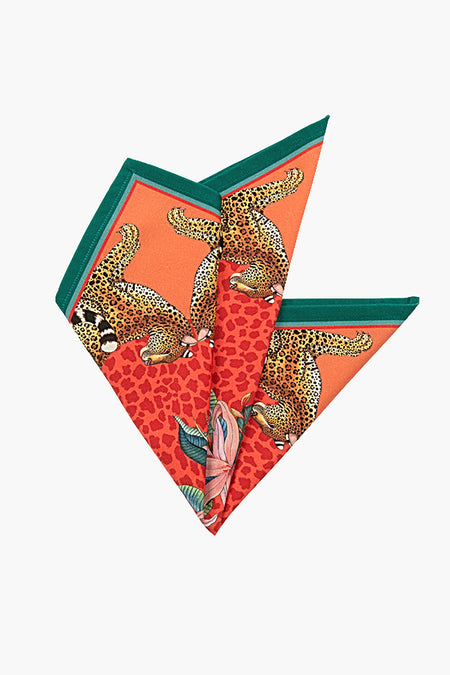 These vibrant and whimsical napkins will instantly add a unique twist to your home decor. Featuring regal leopards, botanical designs and beautiful pops of coral, red and teal, these are a special addition to any table.